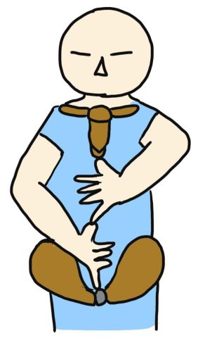 ココを縮めている姿勢に気づいたら身体を立て直して良い姿勢に戻してください。