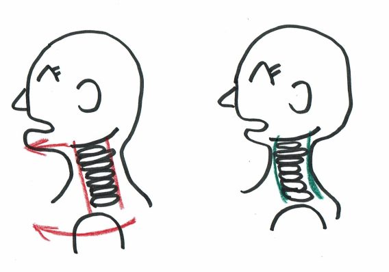 そこが狭いということは、顎(あご)を前にした姿勢をしているということです。