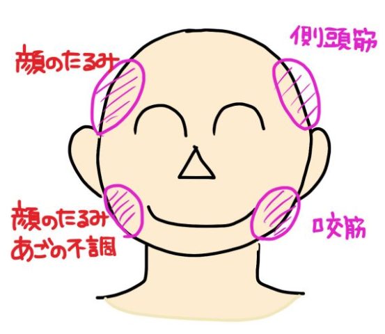 噛み締める筋肉が硬くなっているということで、整形外科さん・口腔外科さん・歯医者さんで、その部分をマッサージすることを奨められている方もいます。