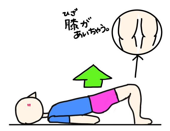 内転筋群が弱かったり、臀筋群が弱かったりすると開いてしまいます。