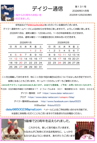 デイジー通信|【横浜市緑区十日市場・長津田のカイロ】女性治療家による「デイジー整体院」