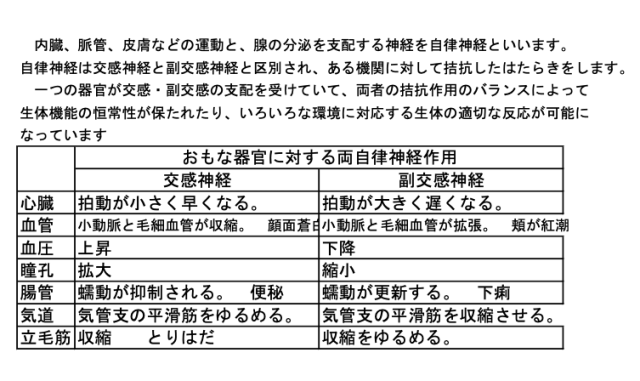 - 交感神経と副交感神経は、ある器官に対して反対の働きをします。