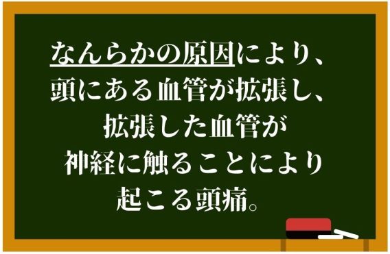 血管運動性頭痛のことで、頭部血管が拡張し、拡張した血管が神経に触ることで痛みが出る